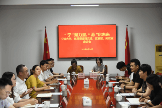 党委书记童莹娟,党委委员、副院长任峰,党委副书记胡秋丽一行赴舟山市普陀区东港街道开展访县拓岗专项行动,与区属相关部门、东港辖区优质企业代表举行“‘宁’聚力量,‘港’启未来”政校企合作座谈会,共商人才供需对接新路径。