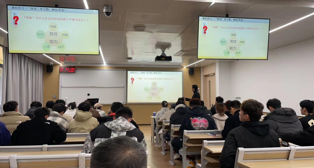 在1号楼105教室组织开展了2023年下半年“课程思政”公开观摩课,学院领导、学院本科教学督导组组长、青年教师参加。周喆啸老师面向2021级运动训练专业学生讲授了《运动训练学》课程。