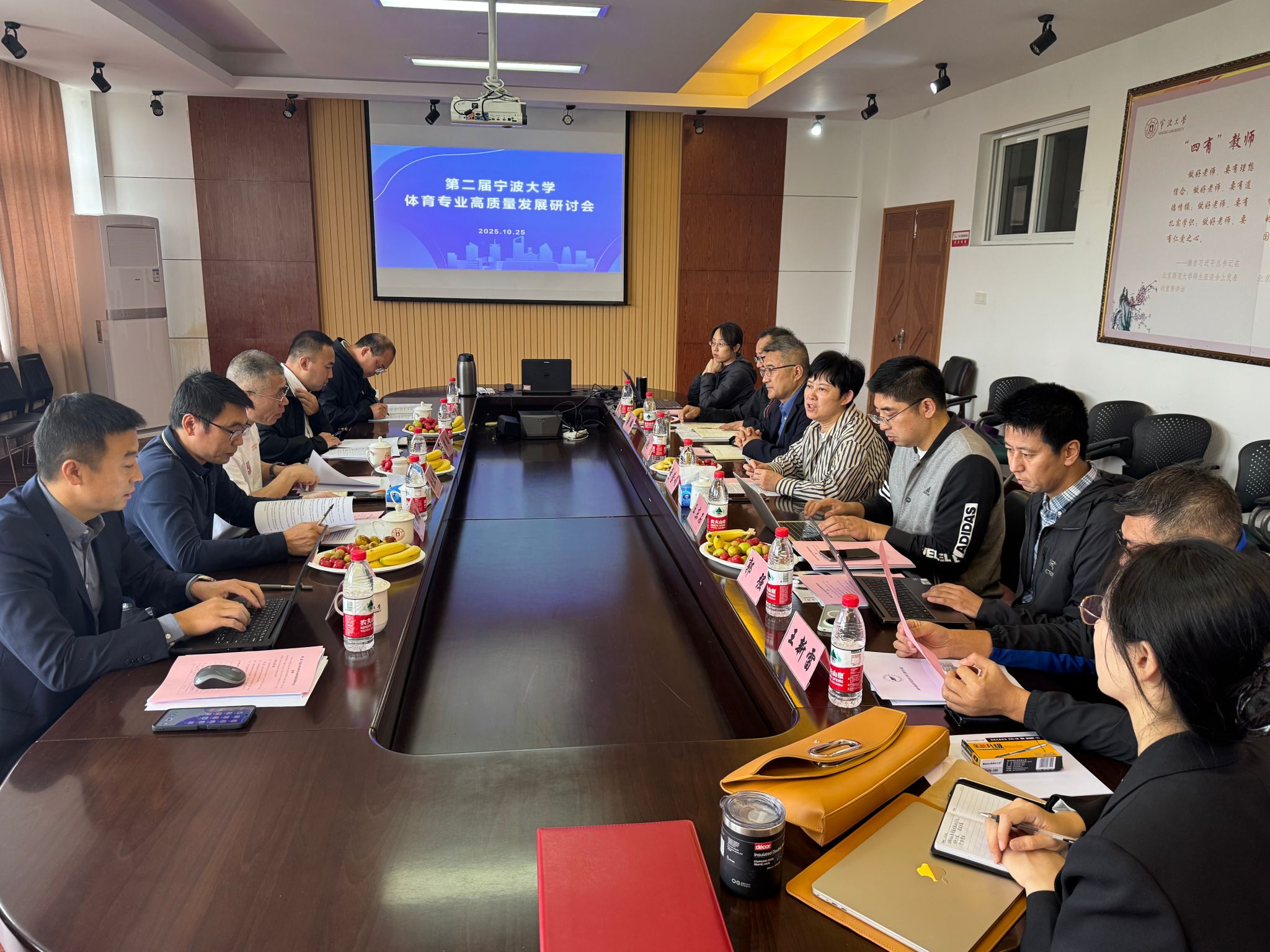 在专业发展汇报环节,体育学系与运动训练系负责人分别就体育教育和运动训练两大专业的建设情况作了全面深入的汇报。体育学系系统梳理了专业认证、国家一流专业及宁波市品牌专业建设的现有成果与面临的挑战;运动训练系则重点汇报了国家一流专业建设的推进工作,并就拟申报的“足球运动”新专业作了详细阐述。随后,赵亮副院长向与会专家汇报了我院体育专业“十五五”发展规划的初步构想。