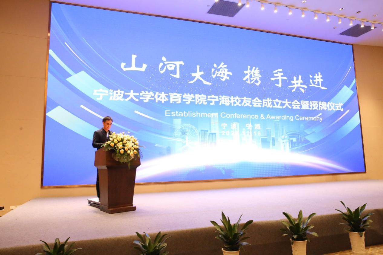 宁海校友会的成立表示热烈祝贺和衷心感谢。在致辞中,他详细介绍了学院发展情况和学院校友会的建设成果,并表示校友永远是学院最宝贵的财富,校友会将不断探索校友工作新路径、新模式,持续为校友提供优质服务,也希望广大校友持续关心、支持和参与学院建设,增强校友间的联络沟通,常回学院看看!同时期待校友可以参加同等学历或博士考试等进修方式,与成人文学