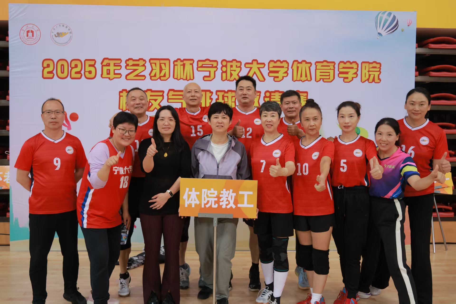 分工会组织教职工代表队身着印有 “宁大体院” 标识的统一队服,精神昂扬奔赴赛场,以气排球为纽带联结校友情深,用体育激情点亮 “艺羽杯” 专属赛场。