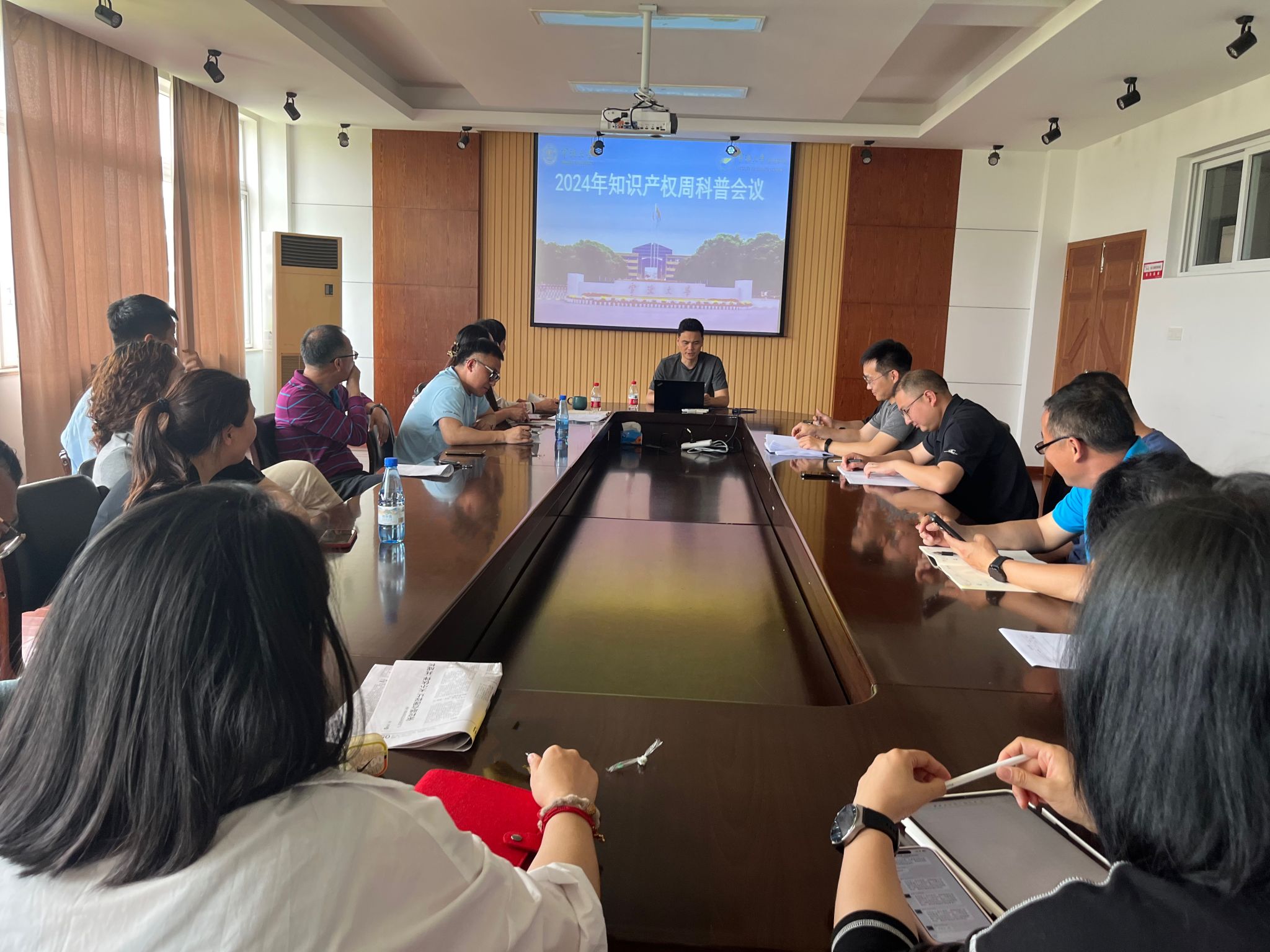 2024年4月23日,在第24个世界知识产权日来临之际,我院积极响应学校号召,精心组织了一场知识产权专题会议。本次活动以“尊重知识、崇尚创新、诚信守法、公平竞争”为主题,旨在进一步提升教职工对知识产权的认识和保护意识,推动校园科技创新与法治文化建设相融合。
