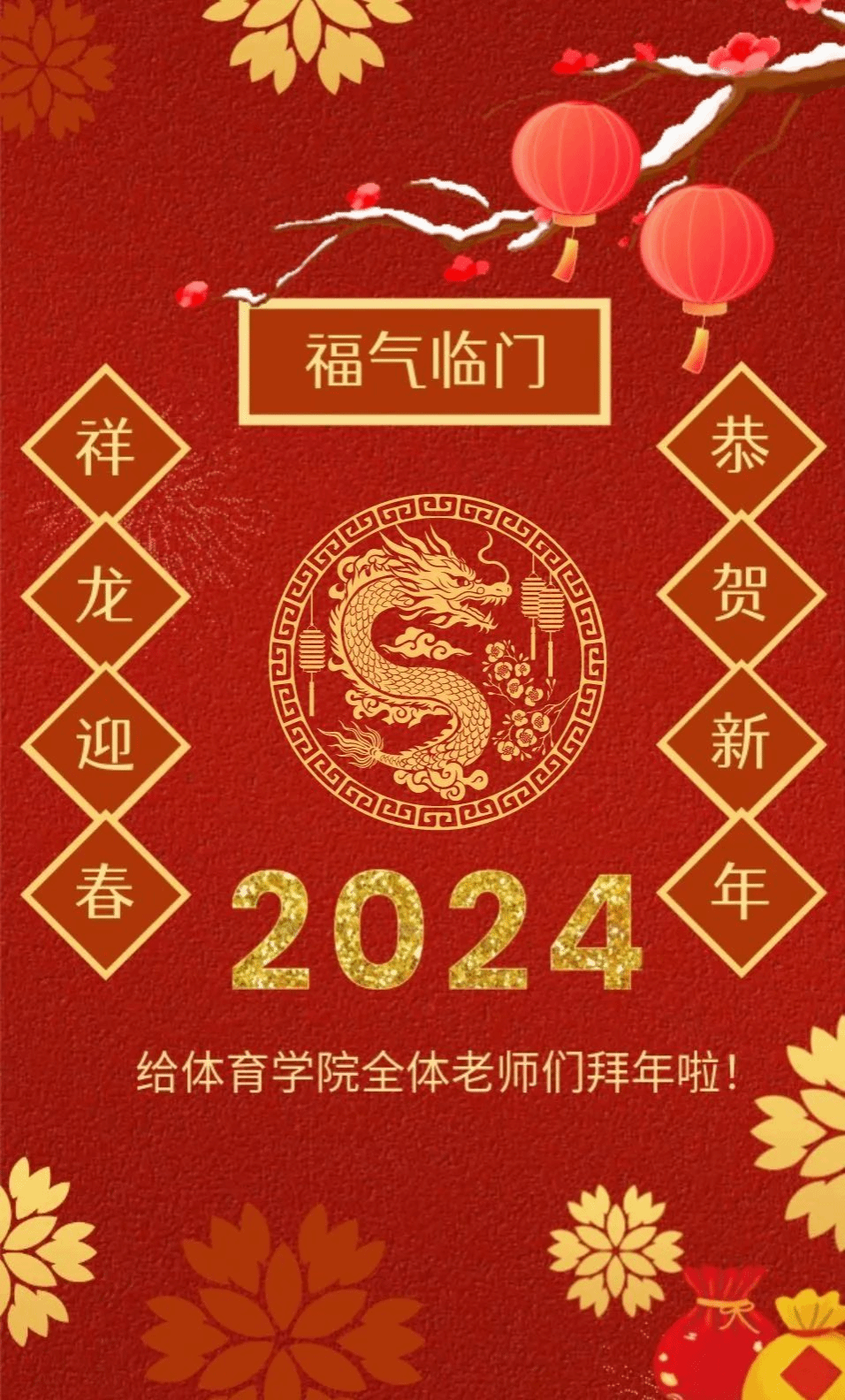 值此新春佳节到来之际,谨向成人文学 全体师生员工、离退休同志、广大校友和关心支持学院事业发展的各界友人,致以诚挚问候和新年祝福!龙年吉祥!