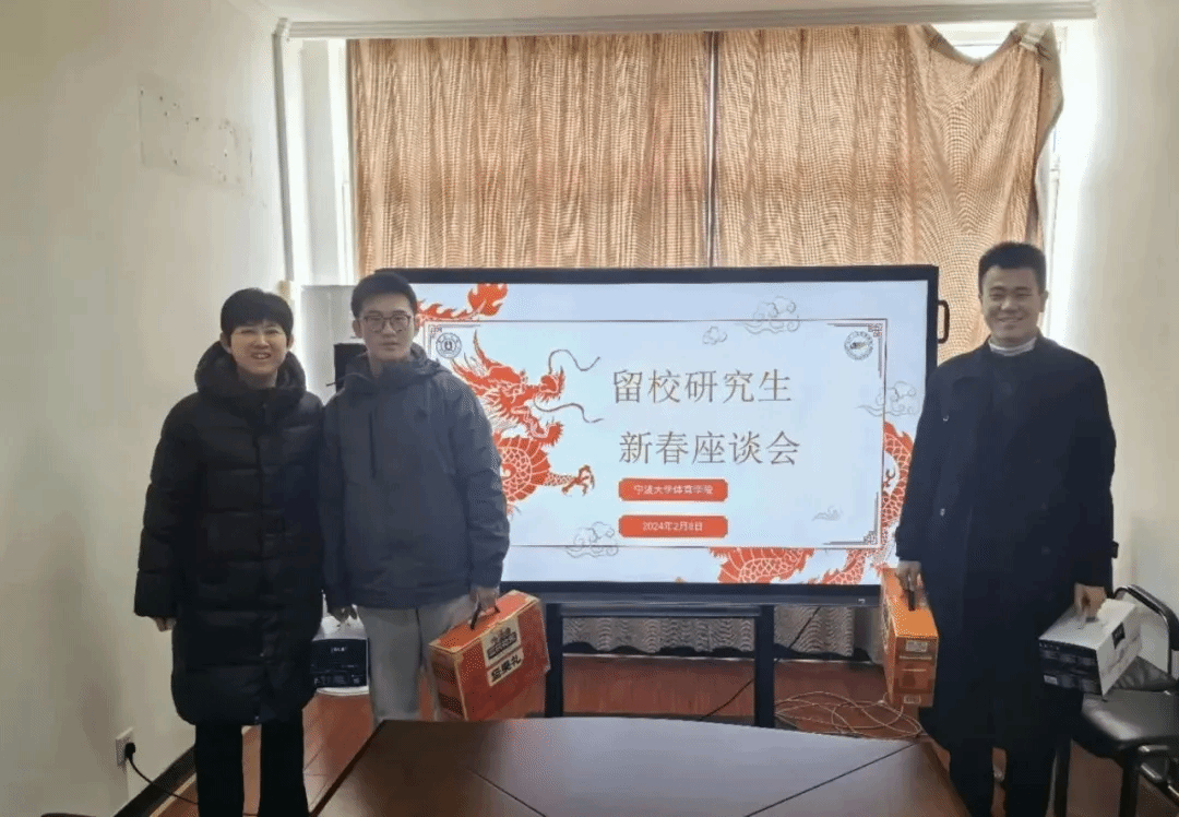 为留校学生举办了一场温馨的新春座谈会。学院党委书记童莹娟、体委办公室杨力老师及留校的硕士研究生代表一同参加座谈。