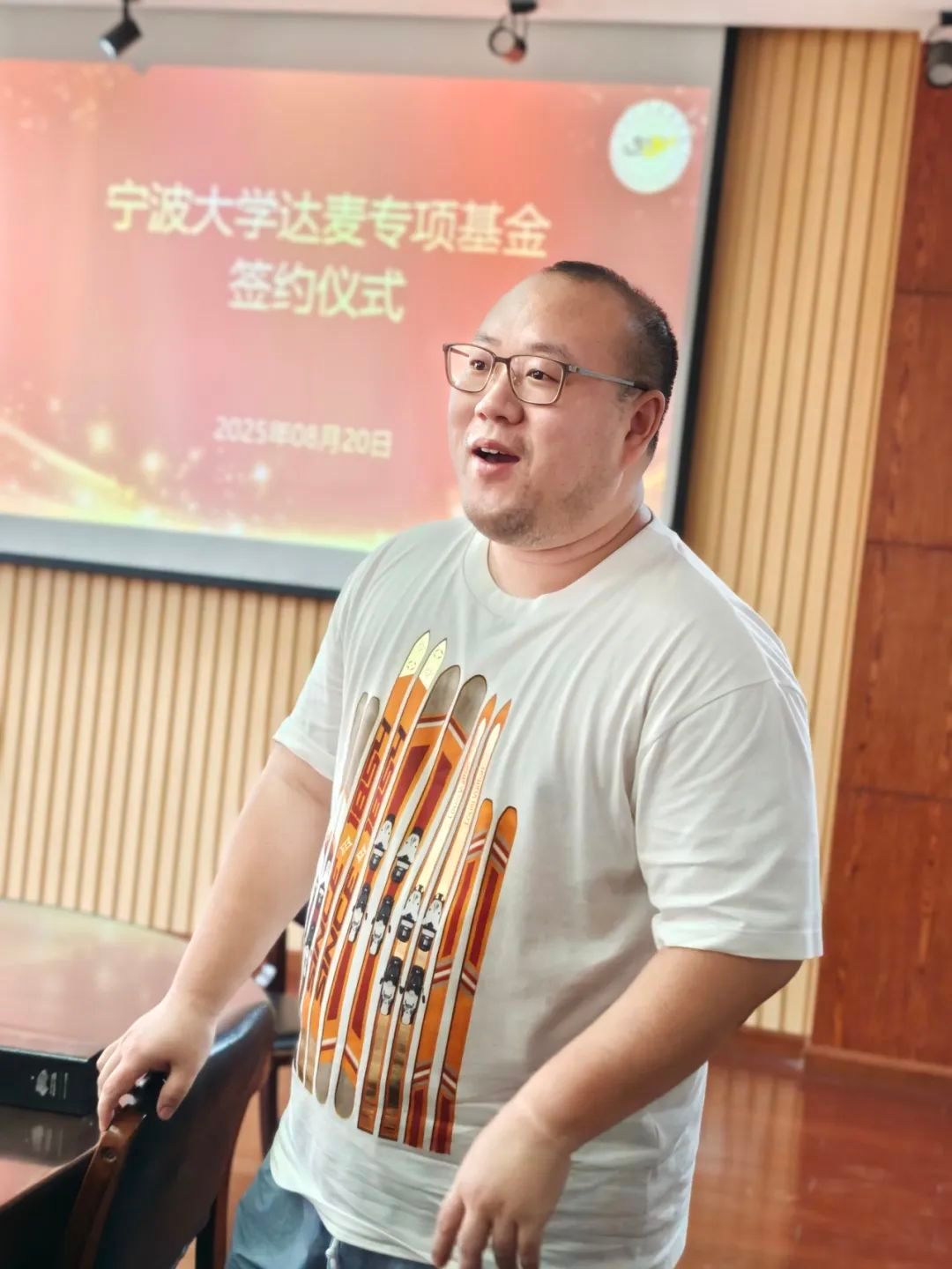 耿浩文先生在致辞中表示:"作为宁大校友,我始终心系母校发展。希望通过设立专项基金,为母校乒乓球事业发展贡献力量,助力培养更多优秀体育人才。"