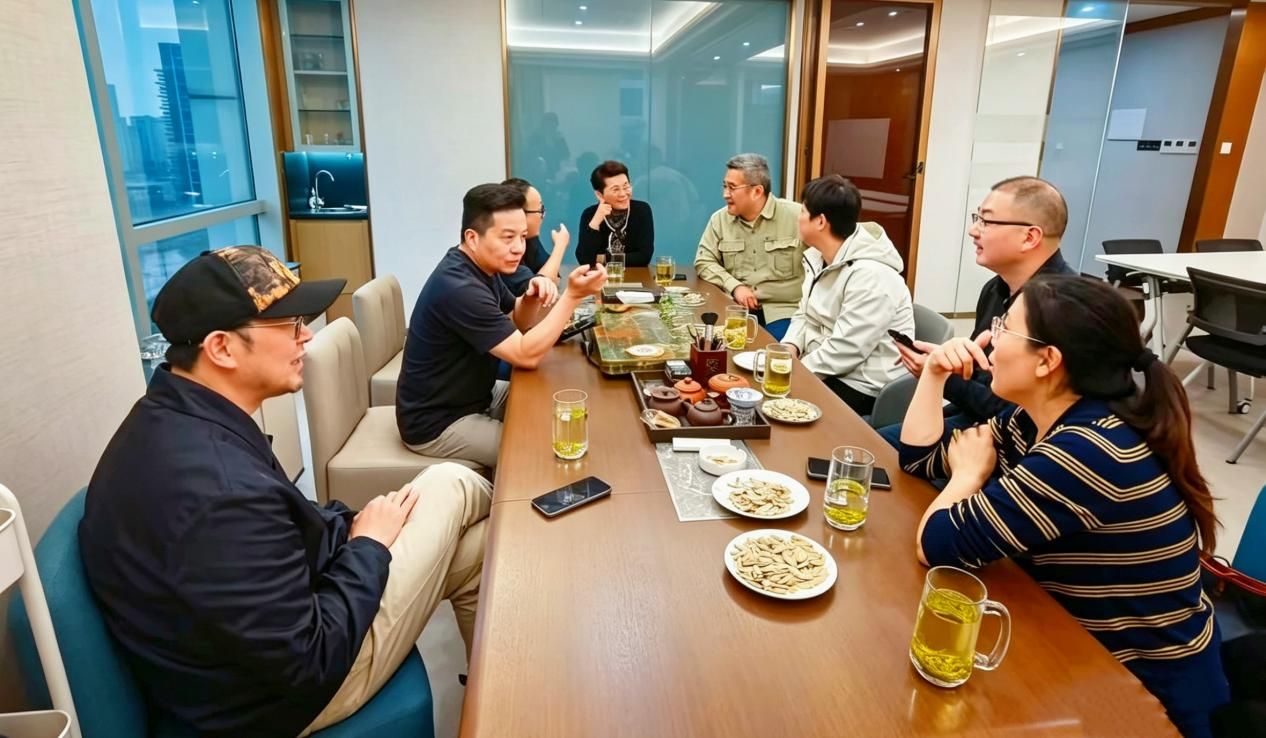 92届校友於智伟热情接待了母校老师一行,双方进行了亲切的会晤与座谈。