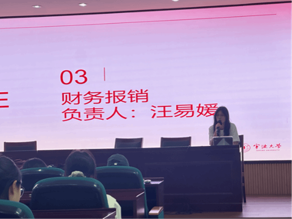各部门负责人讲述工作内容。财务报销负责人汪易媛在本次会议中强调了阳光体育活动印刷品制作申请单和回执单的重要性,并严格要求了云采购的流程以及注意事项。
